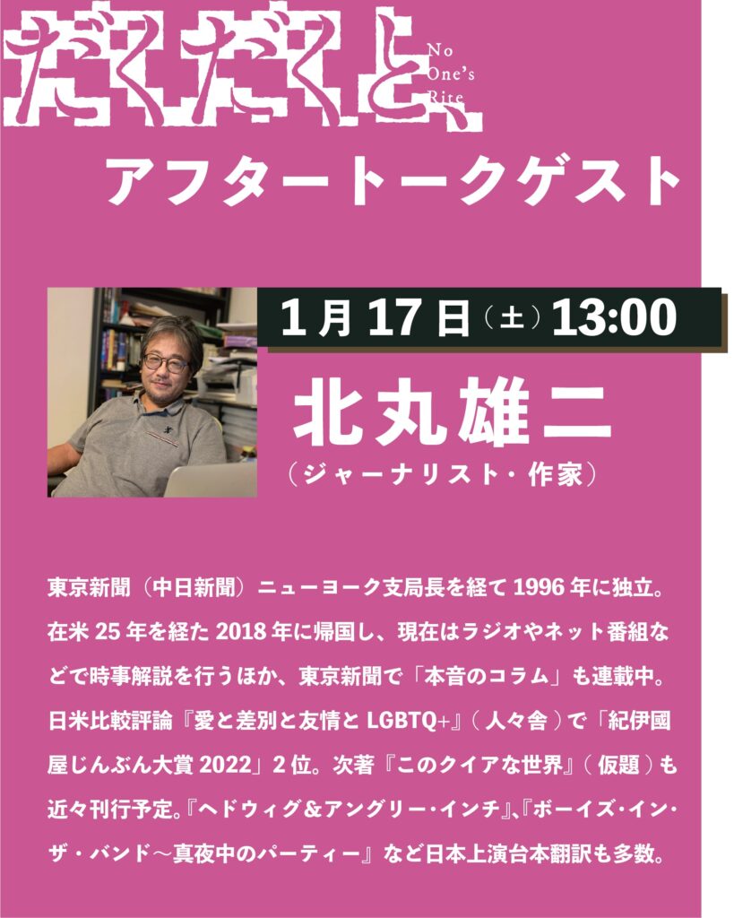 ◉1/17(土) 13:00回 ジャーナリスト・作家 北丸雄二さん